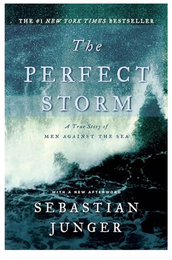 Years ago, in one of the first college classes I ever taught, I assigned students to read Junger’s “The Perfect Storm.” What resonated with me most in his 1997 narrative reconstruction—about the crew aboard the Andrea Gail ship facing a monster hurricane—is how Junger toggled between the interiority of his subjects (who realized they were going to die), and his own journalistic explorations, research and interviews about storms, sailing, drowning.